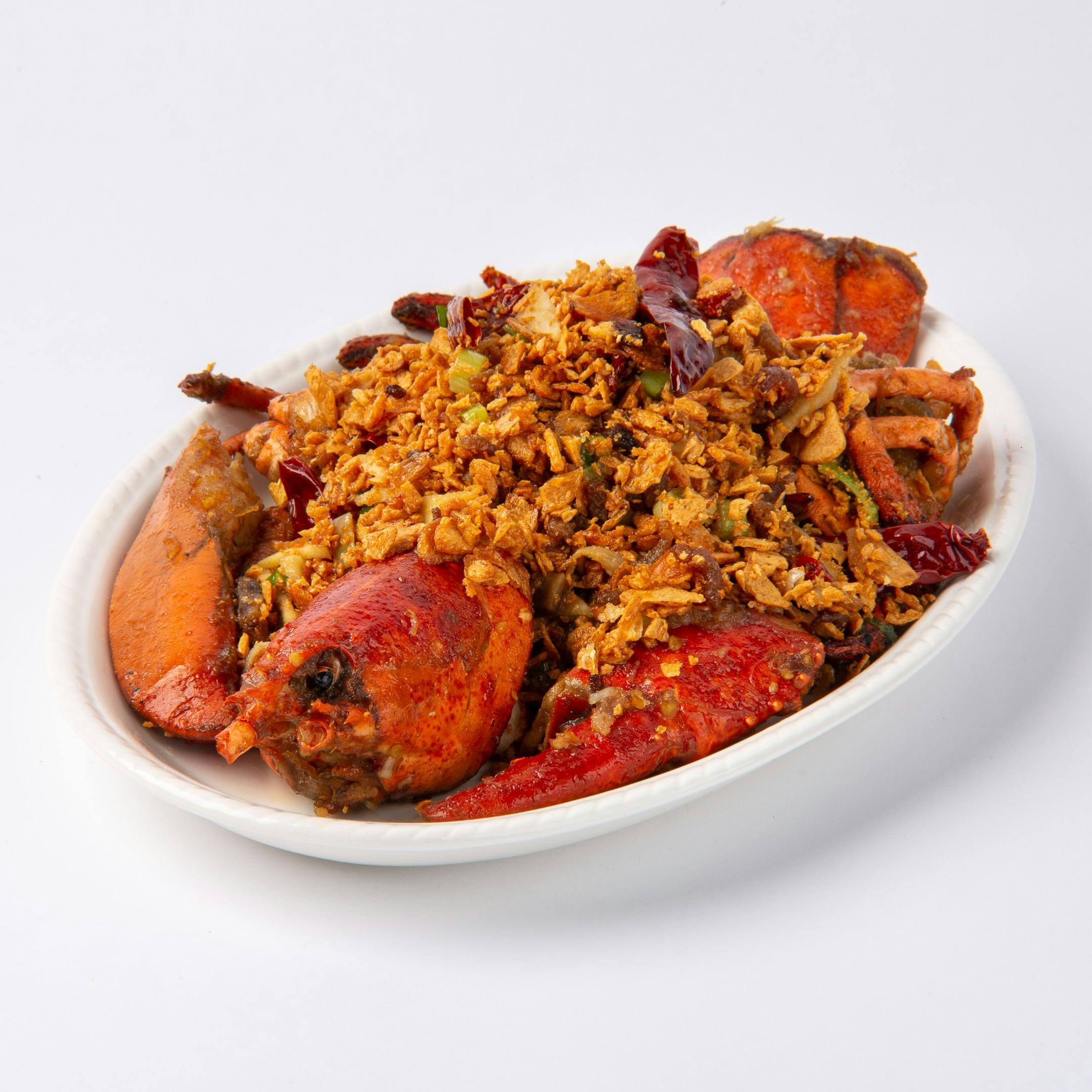 Golden fried lobster tossed with aromatic garlic & green scallions